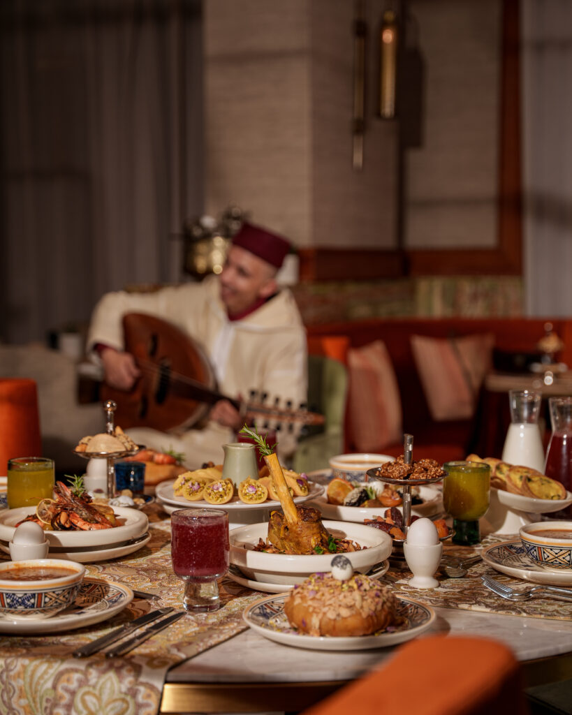 At Flamme d’Orient, the daily ftour becomes a celebration of flavor and atmosphere. Guests are invited to indulge in an abundant buffet accompanied by live Andalusian music, creating a warm and immersive Ramadan ambiance.