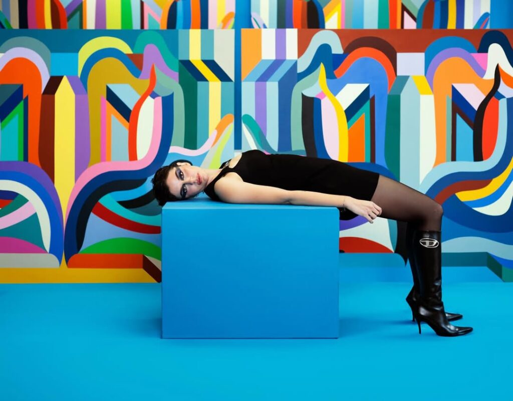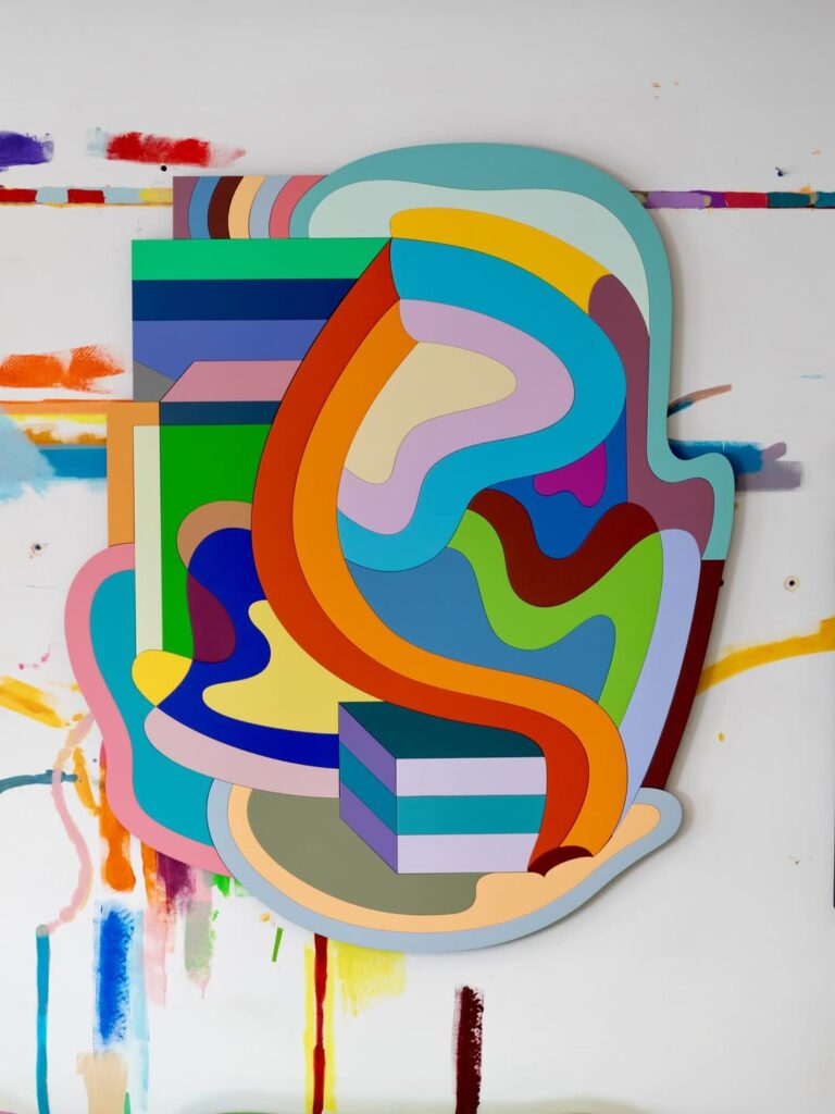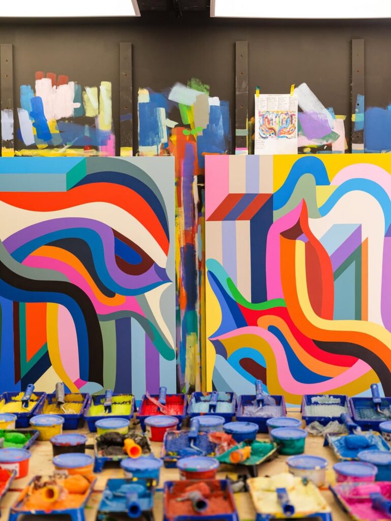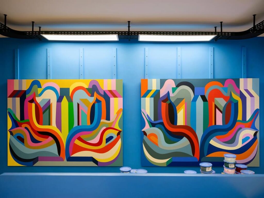 With Dimension 2112: The Station, Ghizlane Agzenaï deepens the construction of a joyful and optimistic universe where abstraction becomes a language of energy and movement. The title references a symbolic mirror date linked to the artist’s birth, yet the project extends beyond autobiography. It proposes an open ecosystem, a space where imagination circulates freely and the future is envisioned as expansive rather than dystopian.