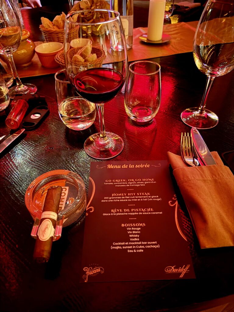 Each dish was paired with a selection of Davidoff cigars, chosen to complement the textures and aromas of the cuisine. Between courses, guests enjoyed a curated bar featuring signature cocktails, fine wines, and premium spirits, in an ambiance defined by soft jazz, candlelight, and Havana’s signature red-and-gold glow.